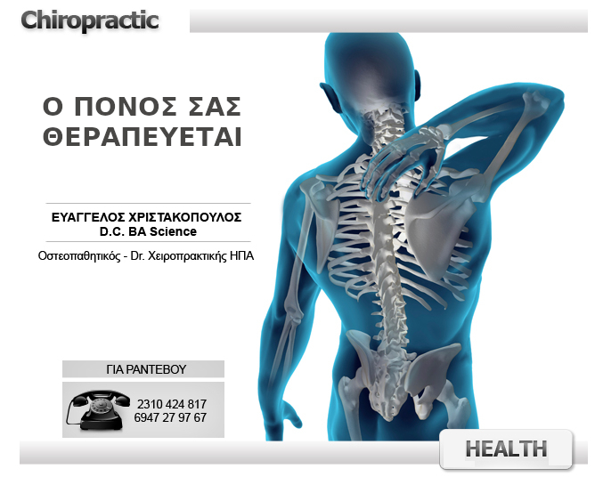 Οστεοπαθητικός - Dr. Χειροπρακτικής ΗΠΑEmail: drvagelis2000@yahoo.comΤηλ.: 2310 424 817Ηροδότου 1 με Αιγαίου, ΒυζάντιοΚΑΛΑΜΑΡΙΑ, ΘΕΣΣΑΛΟΝΙΚΗ